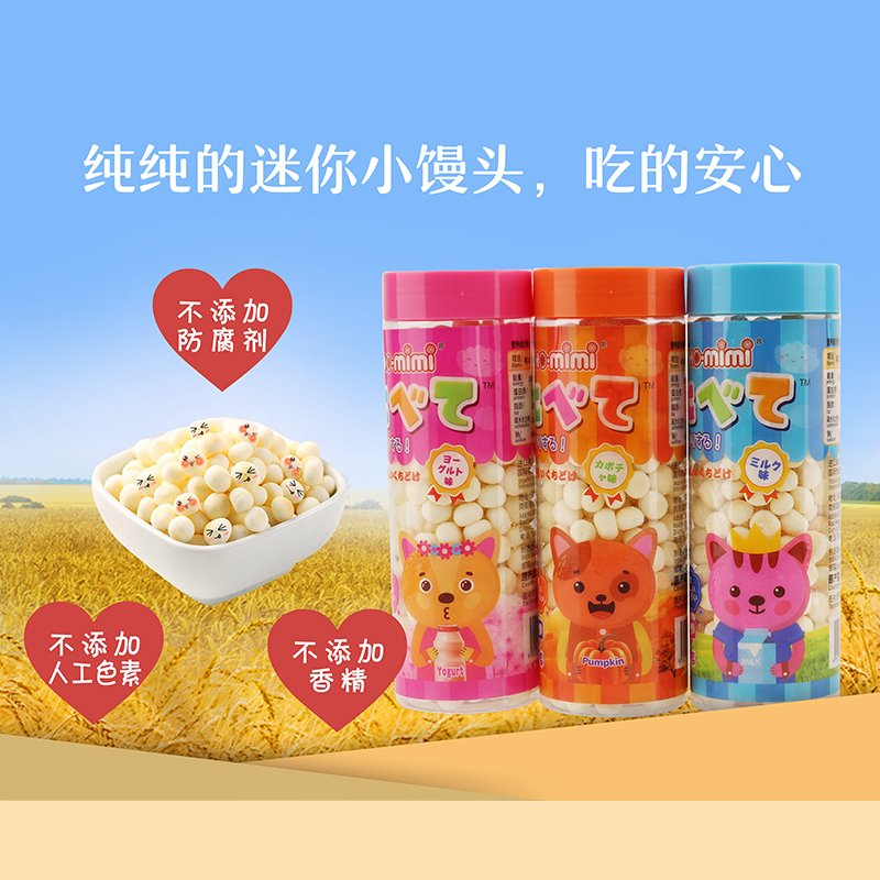 牛奶味迷你小饅頭、南瓜味迷你小饅頭、乳酸味迷你小饅頭